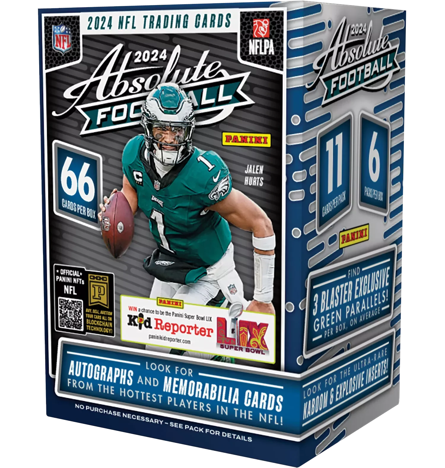 - Absolute Football is a venerable collecting staple that honors the top NFL stars and rookies. Look for Green Base and Rookie Card parallels as well as a healthy array of retail-only autograph and memorabilia cards, featuring the loaded 2024 Rookie Class!